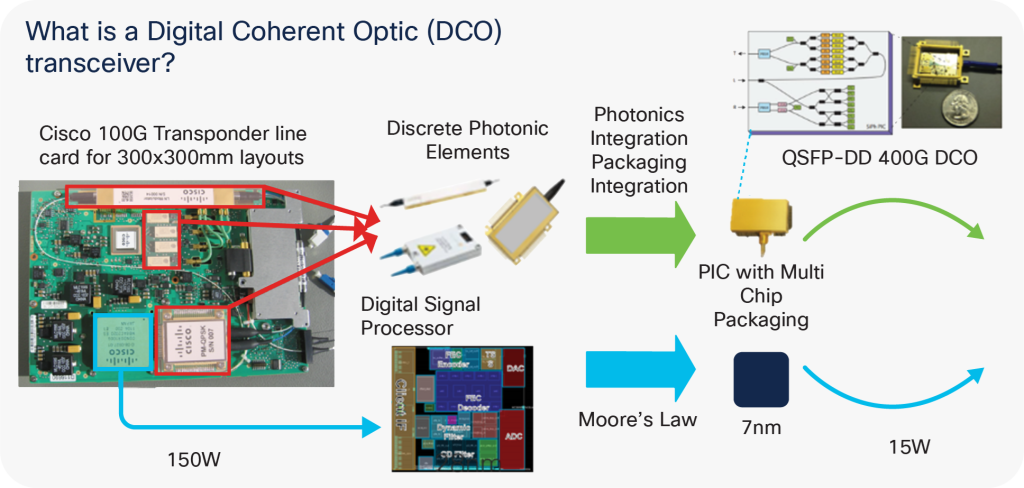 Cisco现在提供一系列全新的400G数字相干QSFP-DD收发器。思科已经提供了一系列能够支持高达200 Gbps波长的数字相干CFP2收发器。由于采用7nm制造工艺的技术的小型化和硅光子技术的创新,现在可以在QSFP-DD形状因子内挤压400G的数字相干WDM接口。